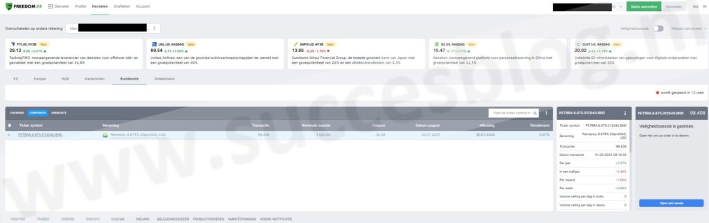 Bij Freedom24 kun je obligaties kopen via hun handelsplatform. Je kiest de obligatie, betaalt de prijs plus kosten, en dan ontvang je rente. Het rendement op obligaties hangt af van de looptijd en de uitgever.