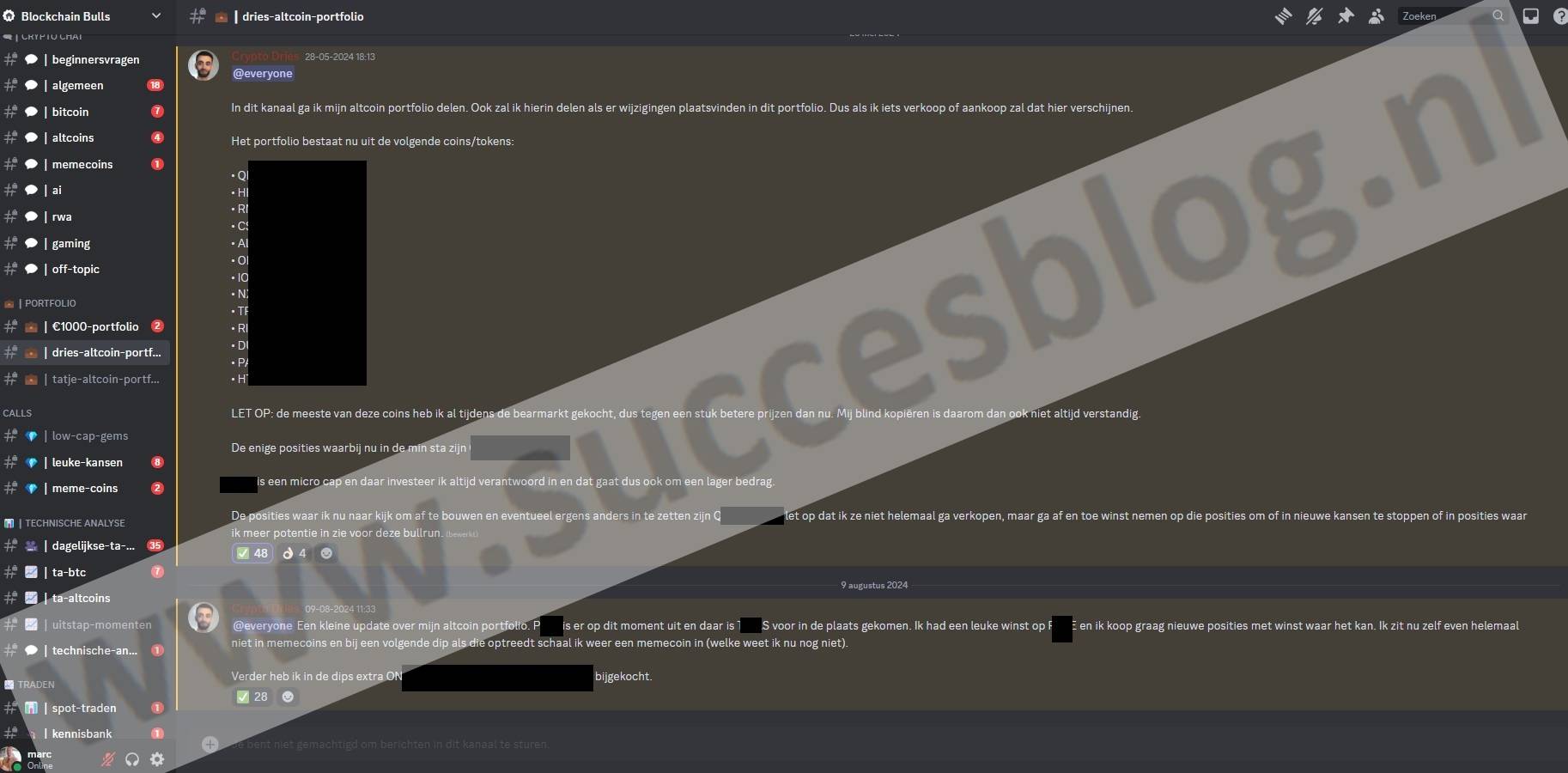 Deze community is iets duurder met zijn 59 euro per maand maar je krijgt wel meer updates met crypto portfolio’s wat overigens ook weer meer voor onrust kan zorgen.
