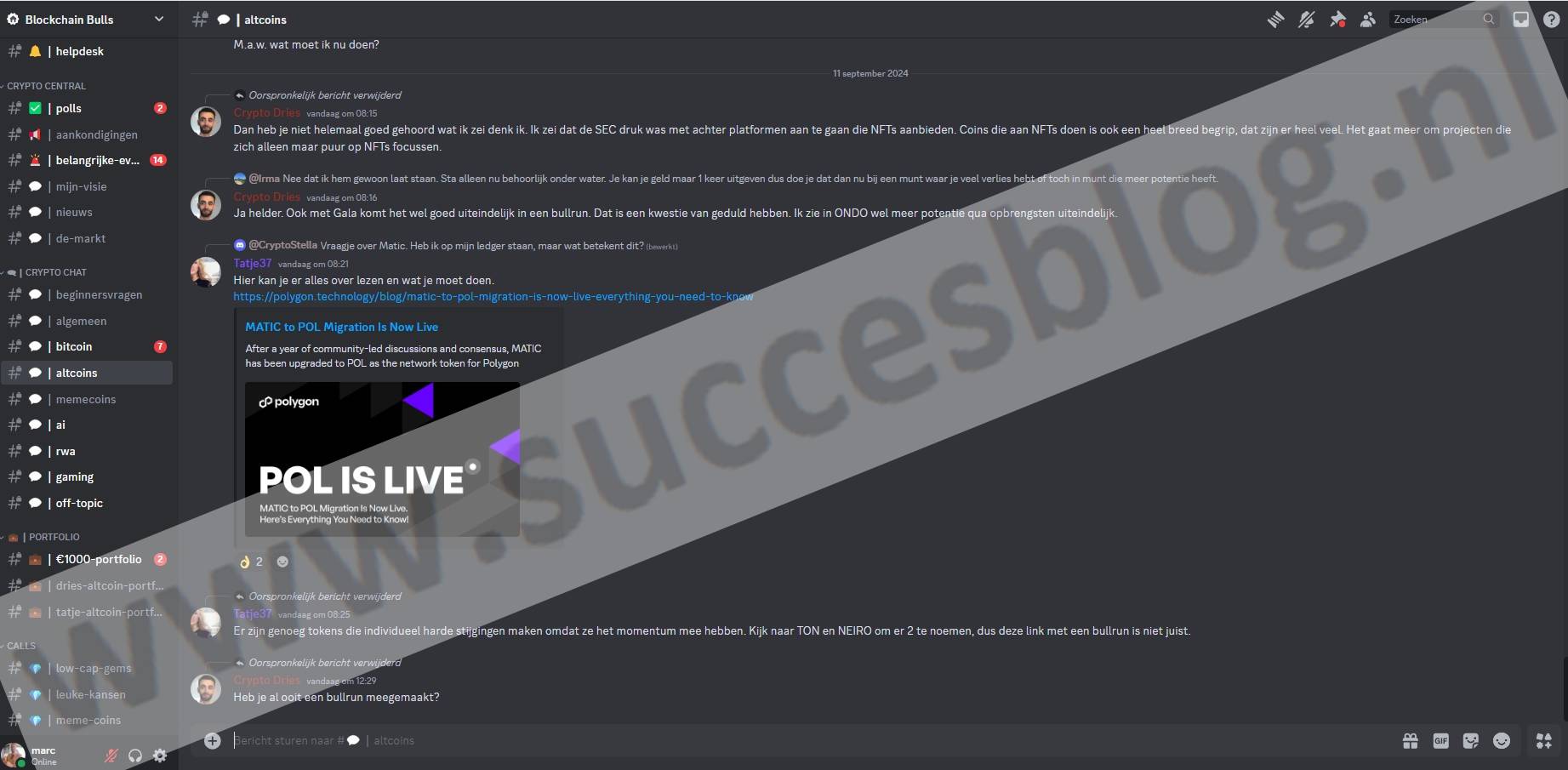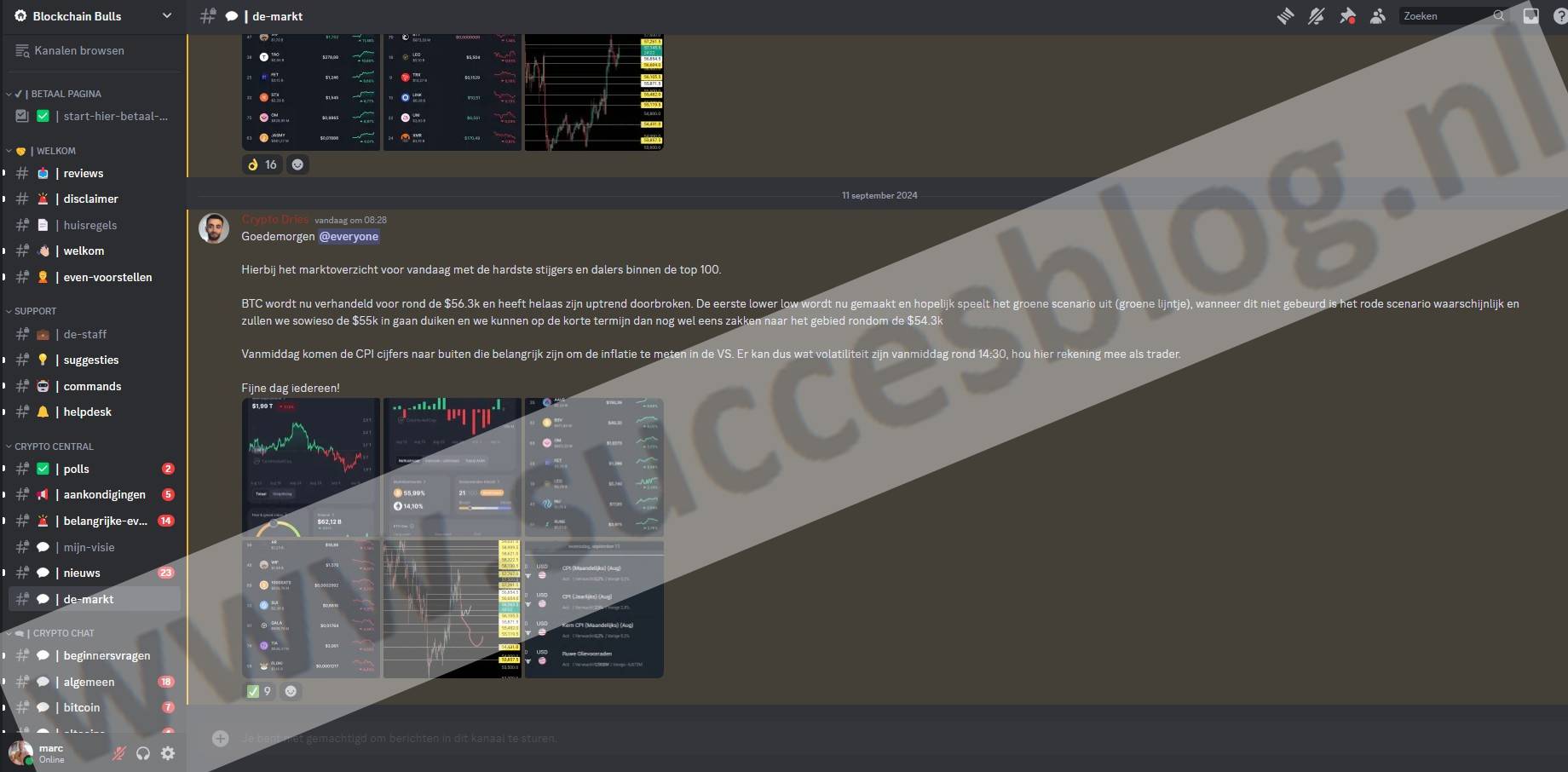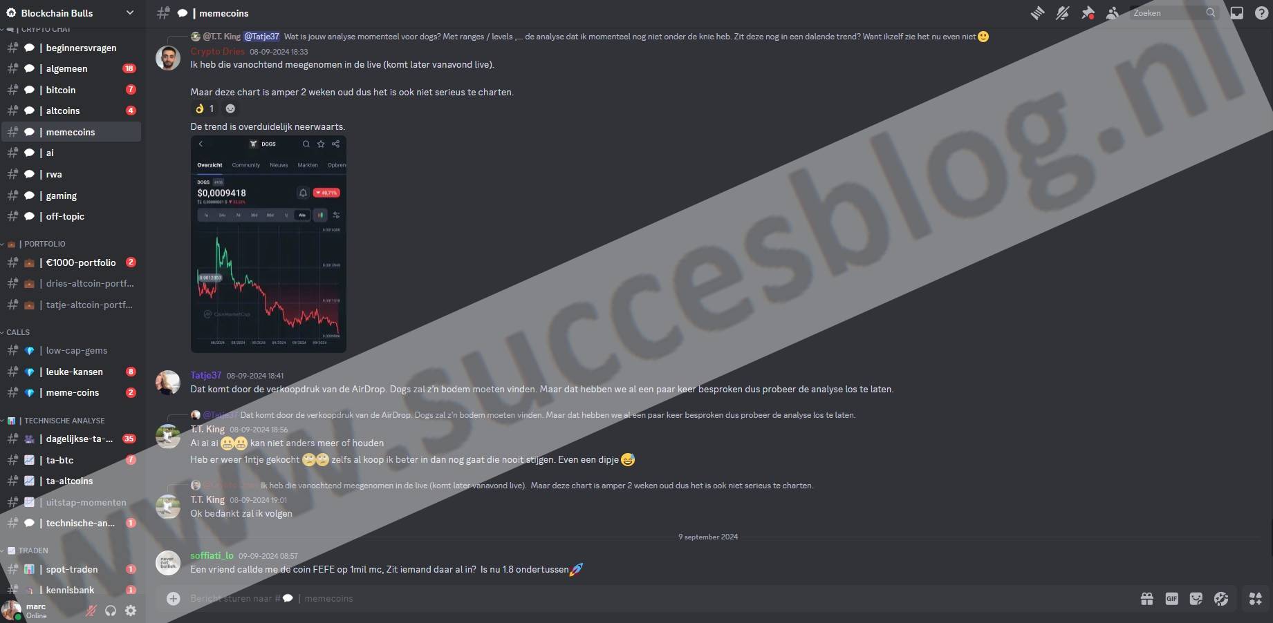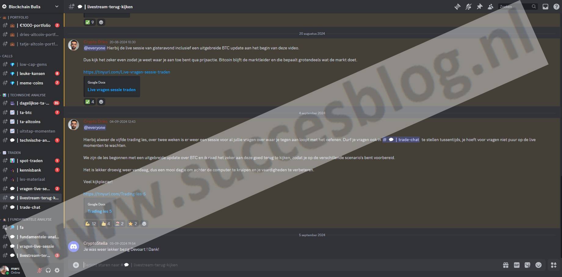 Elke dag krijg je updates en technische analyses op Discord. Dries en zijn team helpen snel. Elien zegt dat de sfeer goed is. Zij vindt het fijn hoe serieus vragen worden beantwoord. Je blijft op de hoogte van crypto door deze updates.