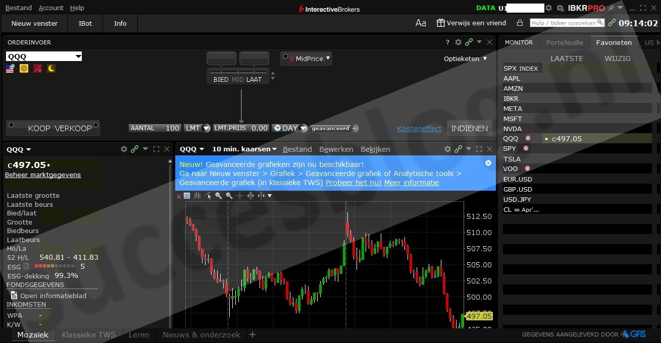 • Handelen via het classic platform is alleen in het Engels, Trader Workstation TWS platform is beschikbaar in het Nederlands