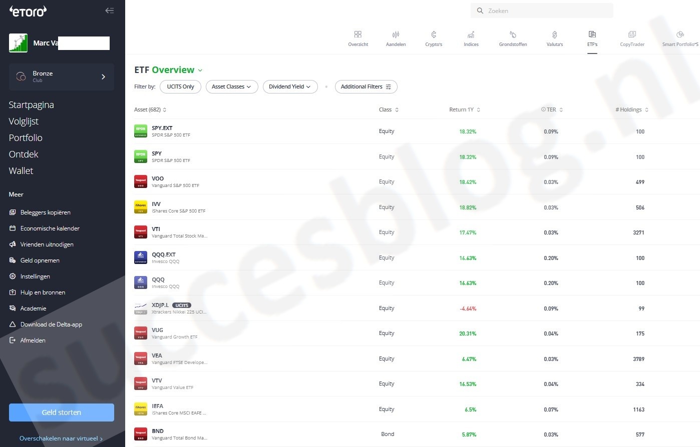 Het handelsplatform laat je ook andere beleggers volgen en hun trades kopiëren. Dit helpt beginners om te leren van ervaren traders. Je kunt met eToro niet alleen losse aandelen kopen, maar ook in ETF’s en indices zoals de S&P 500 stappen met kleine bedragen.