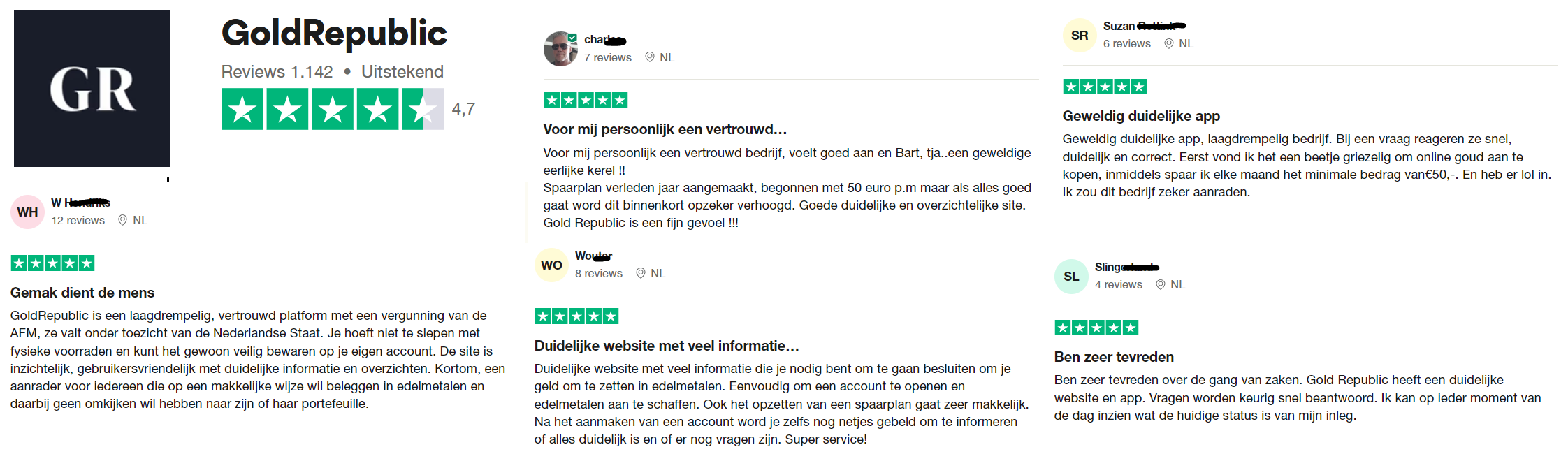 Nu je meer weet over de verschillen tussen GoldRepublic en Holland Gold, laten we eens kijken naar wat klanten zeggen over hun ervaringen met GoldRepublic.