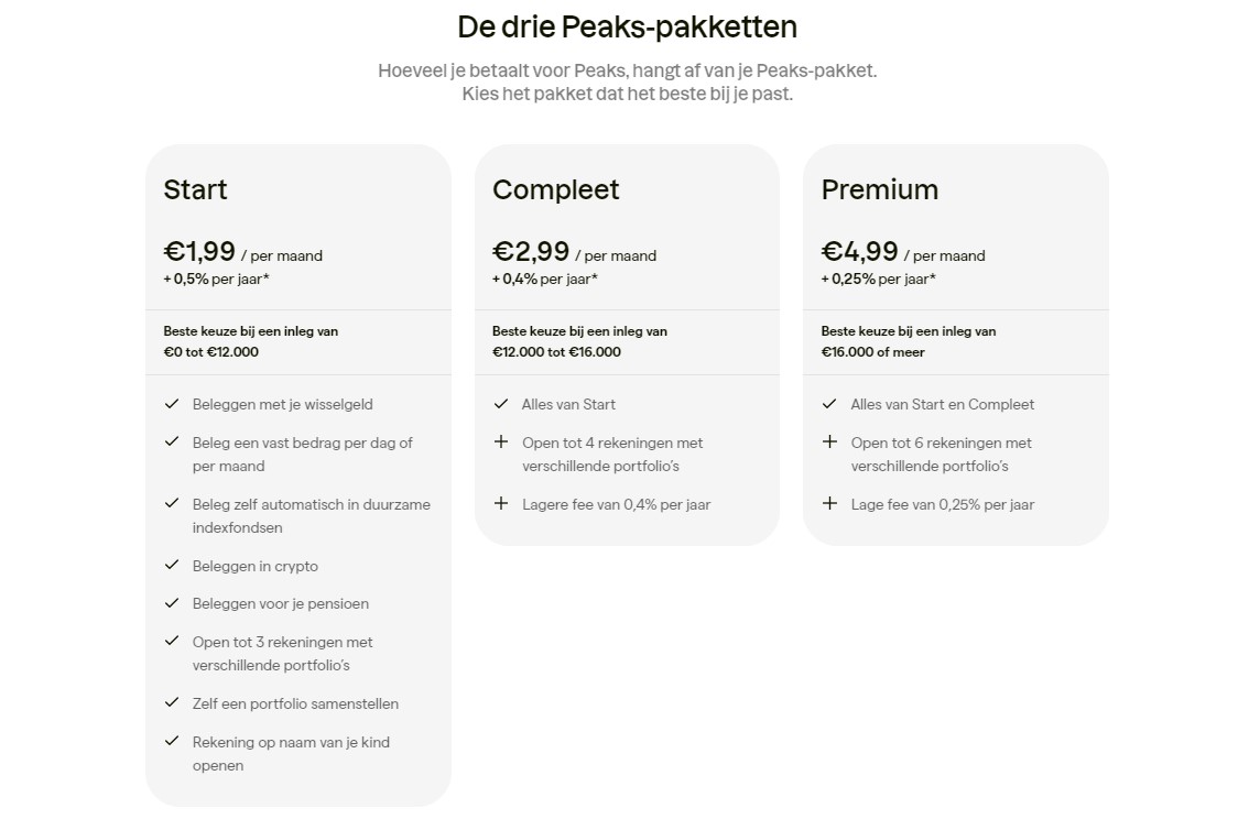 De kosten voor Peaks variëren, maar beginnen vanaf 1 euro per maand. Het is belangrijk om Peaks kosten te vergelijken met andere platforms zoals Degiro om te zien welke het beste bij je past.