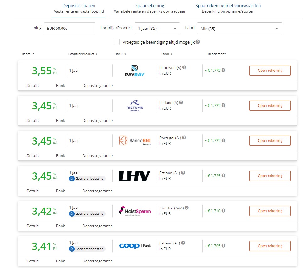 Hun spaargeld, rentes en looptijden staan overzichtelijk bij elkaar.